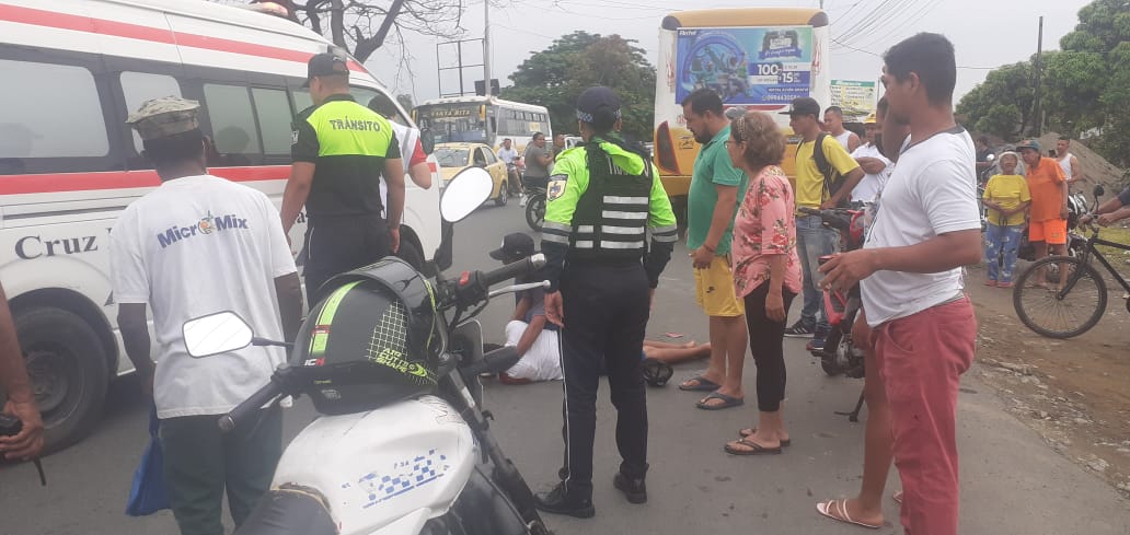 La mañana de este lunes 16 de enero de reportó un accidente de tránsito en #Babahoyo, sector “La Ladrillera” impacto entre un bus de transporte urbano Santa Rita disco 30 y dos hombres que se transportaban en una moto, dejando a uno de ellos gravemente herido sobre la vía.