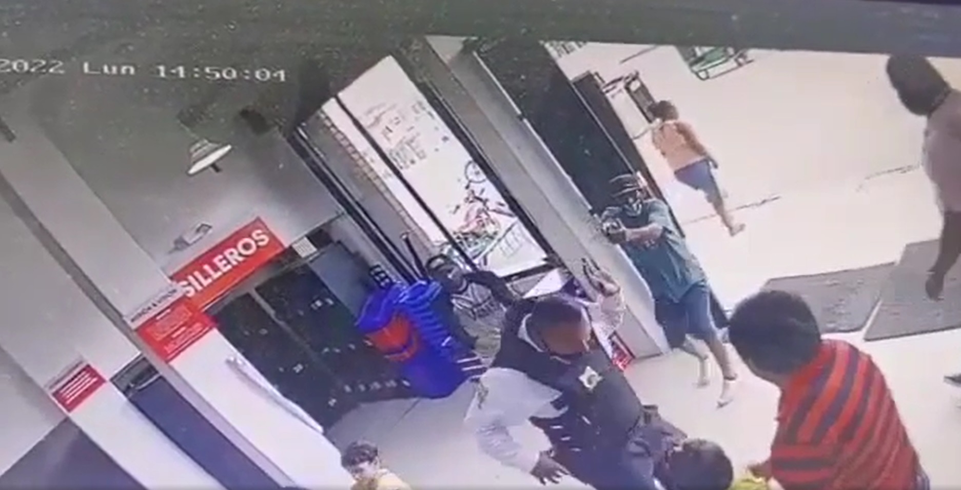 En el clip se observa cómo los antisociales con arma en mano atacan al guardia, luego de no lograr su cometido huyen del lugar, en el que permanecía mujeres y niños.