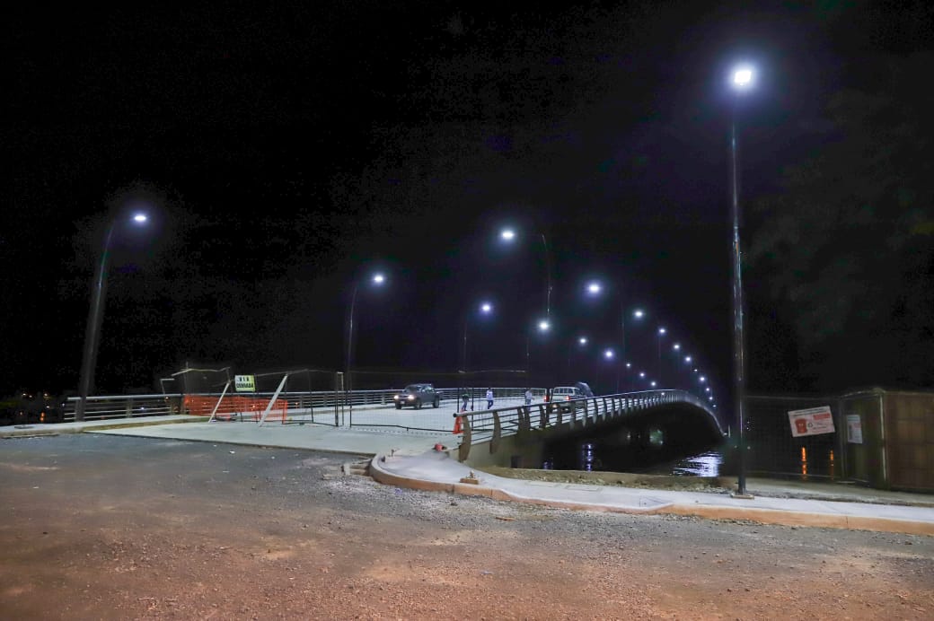 El alcalde Dr. Carlos German, verificó el estado de las luminarias distribuidas en el viaducto. En los próximos días se asfaltarán los accesos en ambos extremos, y la obra estaría lista para el beneficio de la colectividad fluminense en temas de transitabilidad, comercio y rápido acceso a la capital riosense.