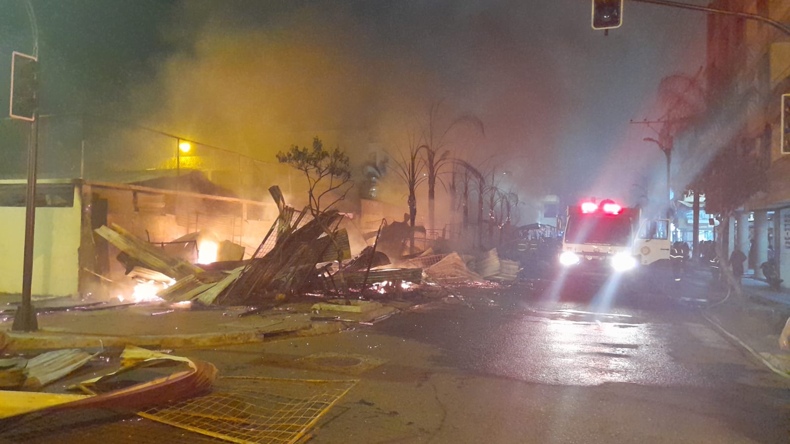 A la media noche de este lunes 12 de diciembre, locales comerciales de ventas de accesorios navideños y pirotecnia ubicados en las calles Eloy Alfaro, entre 10 de agosto y 5 de junio se consumieron tras una fuerte explosión e incendio.